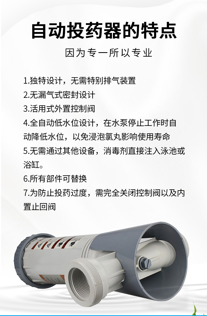 泳池药物投加装置,效率高,无须人工管理,控制安全可靠,节省人力,操作方便,省时省力。